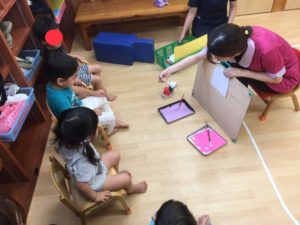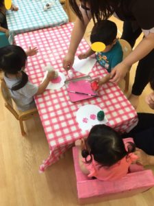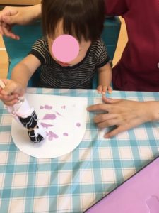 スポンジを使い、先生と一緒にポンポン😄