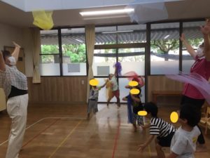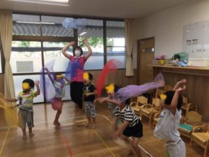 唄に合わせてシフォン布を揺らし、