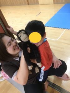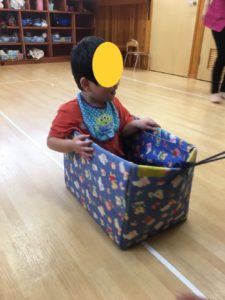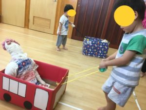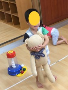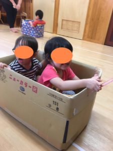 遊んでいたお友達は、主活の箱電車で選んだのは、女の子のぬいぐるみでした😂