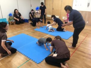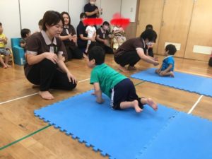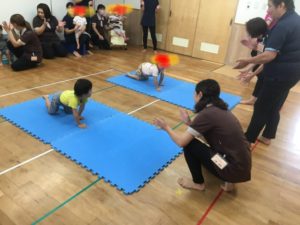 四つ這い歩行でも、子供に合わせた促がし方や声かけ、、、