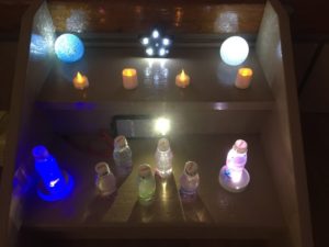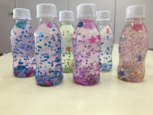 制作した瓶に光を当てて、光と動きを楽しんだり✨