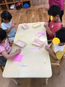 先週 台風で休園していたので、今日は、制作活動を頑張りました✊