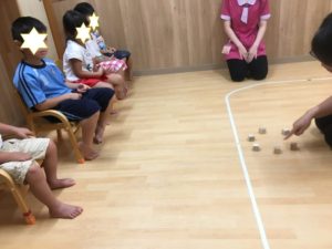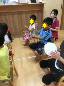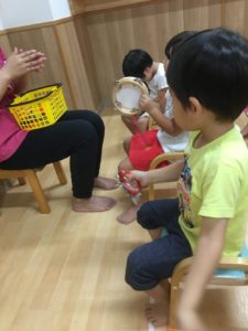 積み木で音を鳴らしていき、順にお友達に回していきました(^^)