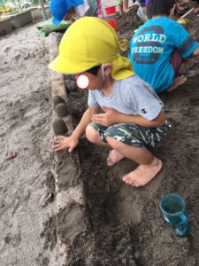 必死にカップに砂を入れて型抜きをしているお友達がいました😍
