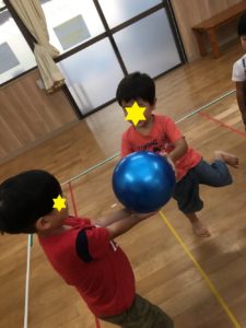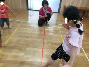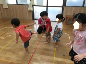 「した〜」と、叫ぶお友達、ゴムを見ながら