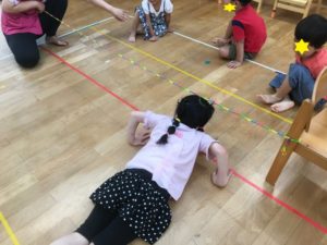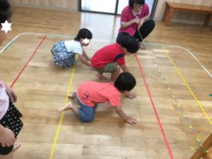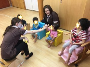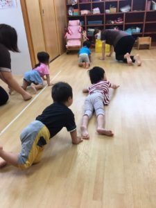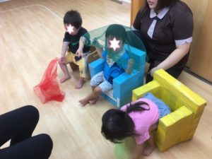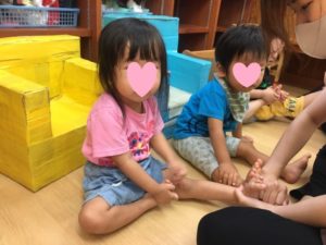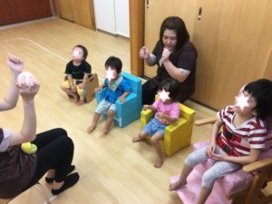 馴染みやすいメロディで、情緒も安定しやすく、また、手足に触れたり、体を動かすことで、色々な感覚の刺激にもなるわらべ歌あそびをたくさんしたお友達でした(#^.^#)