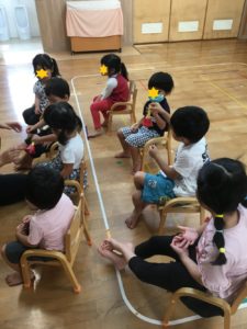 ♫チンチロリン チンチロリン🎶の唄に合わせて、となりのお友達にベルを鳴らさないよう回していきます🔔