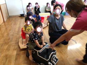 また、ロープを握って運転手さんをしてくれるお友達もいました🚂