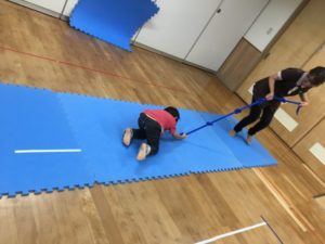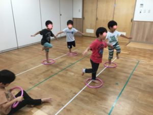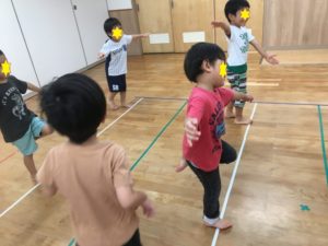 まずは、バランス感覚を養うための片足立ち5秒から挑戦👣グラグラしてしまうお友達😭