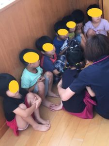 朝からとっても楽しく遊んでいたお友達ですが、今日は、防犯訓練なのです😱