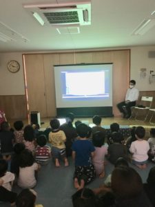 がんこちゃんの防犯DVDを、みんな真剣に見ていました👀