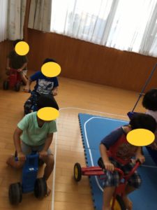途中からは、男の子は、三輪車やバイクの乗り物に🛵