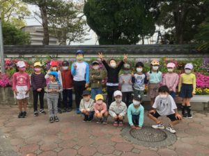 朝の掃除を終えて、小学校まで歩いて散歩に行きました。