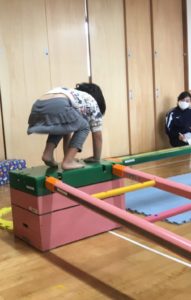 少し高い一本橋ゆっくり進む子もいれば、最後の方が急ぎ足になる子。
