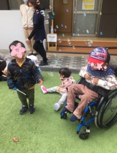 たくさんのシャボン玉に喜んだり(*^^*)