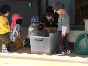 久しぶりに登園できたお友達はすぐに慣れてくれて砂場で遊んだり、