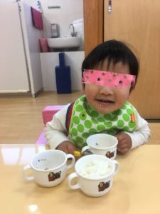 くまグループのお友達もお外でたくさん遊んでお腹も空き、