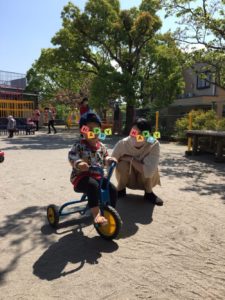 大好きなママと一緒に三輪車で遊んだり、