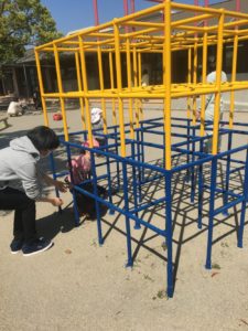 ジャングルジムを迷路のようにして遊んでみたり、自分達の大好きな遊具であそびました。