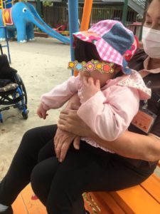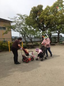 バギーに乗って、ママと一緒に園庭をお散歩✨