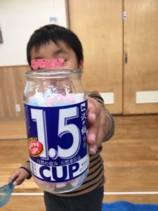 スプーンを使ってカップ一杯にピローを上手に入れているお友達もいました。