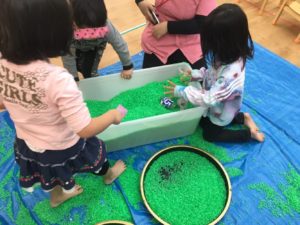 楽しんだあとは、丁寧にお片付けして行くお友達もいれば、まだ遊びたいピローの中に入るお友達、色々でした。