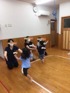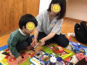 今日は、親子遠足で外にお出かけ予定でしたが、梅雨入りして、天気があいにくの雨でした。場所をすくすく支援センターヘ変更され実施されました。