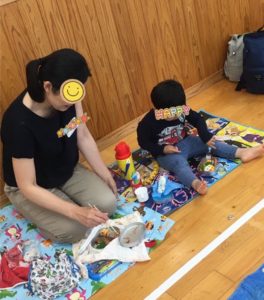 たくさん動いてお腹も空き、お母さん手作りのお弁当をいただきます。