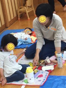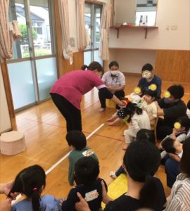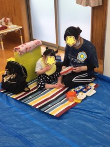 今日は、親子遠足で外にお出かけ予定でしたが、梅雨入りして、天気があいにくの雨でした。場所をすくすく支援センターヘ変更され実施されました。