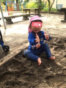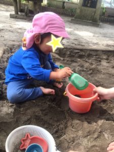 “スコップちょうだい”とジェスチャーで伝えてくれるお友達♫