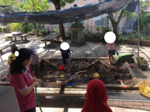 最後に竹筒から水を流して川にして、大盛り上がりなお友達でした♪