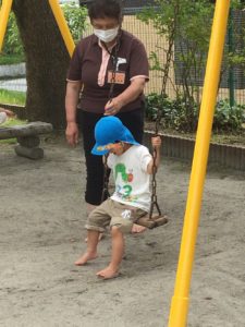お外で、みんな好きな遊具で遊んでいます。