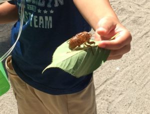 道具もかぎられていますが、お友達と道具の貸し借りをしています。網を上手に使ってセミを捕まえていました。