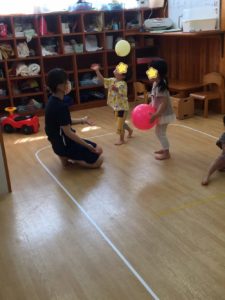 今日のクマとキリンさんは、自由遊びで、一緒に遊んでいます。