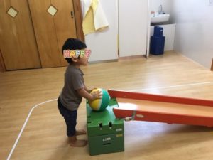 「いくよ❗️」の掛け声で転がしている子もいました。
