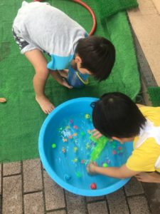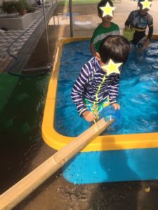 水の流れが早くてうまく掴めないお友達もいましたが、
