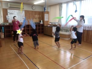 シフォン布を投げてキャッチ♫