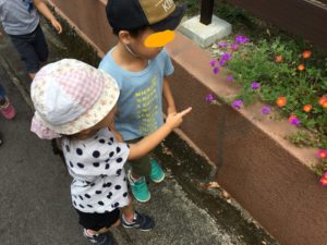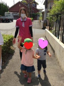 お友達と手をつないでお散歩をしました。