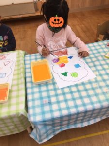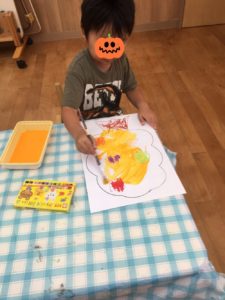今日のリスは秋の製作ではじき絵をしました。