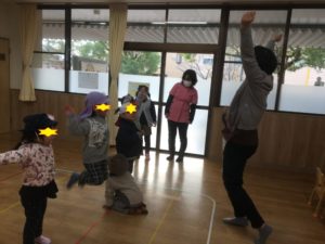 6日りす組のお友達、即興でおゆうぎ💛 曲は、🎵幸せなら手をたたこう🎵新年早々、縁起もあり元気の出る歌でお友達も大喜び(笑)