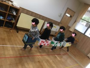 4人ずつ乗車したら、しゅっぱーつ❣歌に合わせて軽快に走る🚌は、可愛いお友達をいろいろな所へ連れて行ってくれましたヾ(≧▽≦)ノ