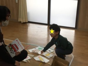 主活は、お話・乗り物ごっこあそび🚌 絵本の❝おべんとうバス❞に出てくるおかずを選んで
