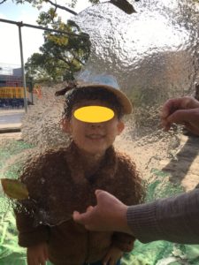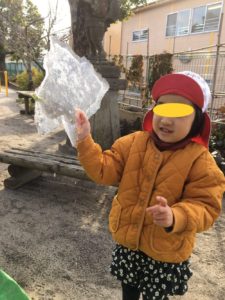 8日の朝、園庭には初氷❄️が見られました😀顔よりも大きな初氷を、とっても嬉しそうに握ってパチリ📸