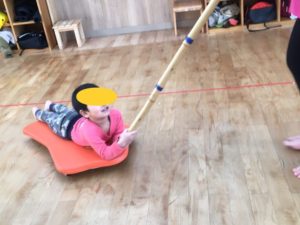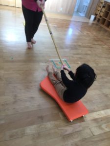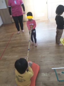 箱車を先生が押すと、かなりの振動とスピードで動く箱車に、大喜びのお友達🤣