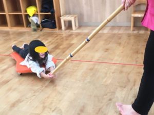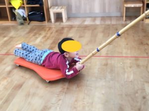 👇ここからはらいおん組の登場です🤗今日はスケーターあそびをしました❣️まずは先生がスケーターを引っ張ります(^^)