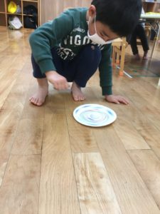 きれいな模様が、回すごとに浮き出てくる様子に見入って、お正月ならではのあそびを楽しみました(╹◡╹)♡