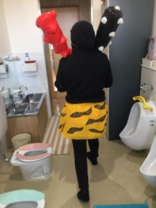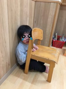 ちょっと怖すぎて、教室の隅っこに椅子を持っていき、隠れるお友達もいて、きりん組も大騒ぎ💨