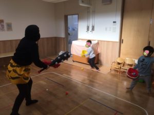 午後からは年長年中のお友達❣️おやつの恵方巻きを食べたあと、やはり👹さん、現れました😱