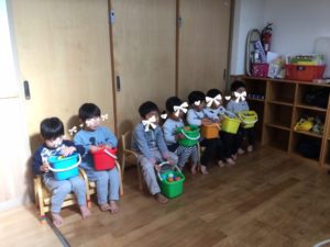 まずは、くま組❣️アレレ⁉️鬼が来たというのに、みんな慌てずにいます!(◎_◎;)