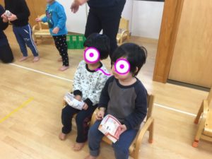 最後は、金棒を取り上げることができ、👹は退散していきました👏年中がいるきりん組、怖いながらも立ち向かっていました👏